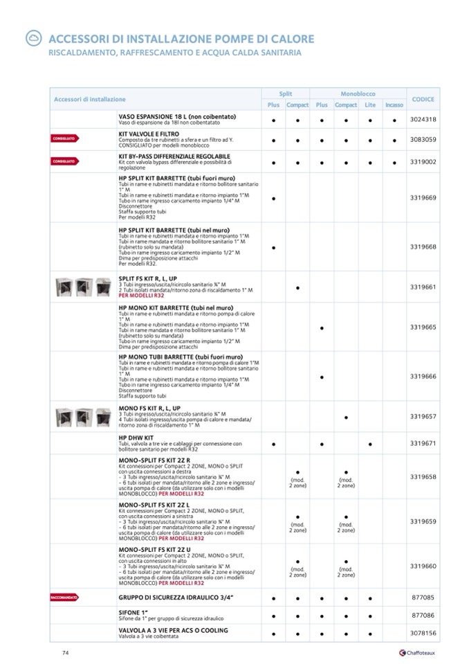 Kit connessioni per Compact 2 ZONE, MONO o SPLIT,