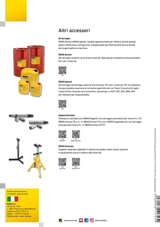 REMS Sanitol e REMS Spezial. Studiati appositamente per filettare. Quindi elevato