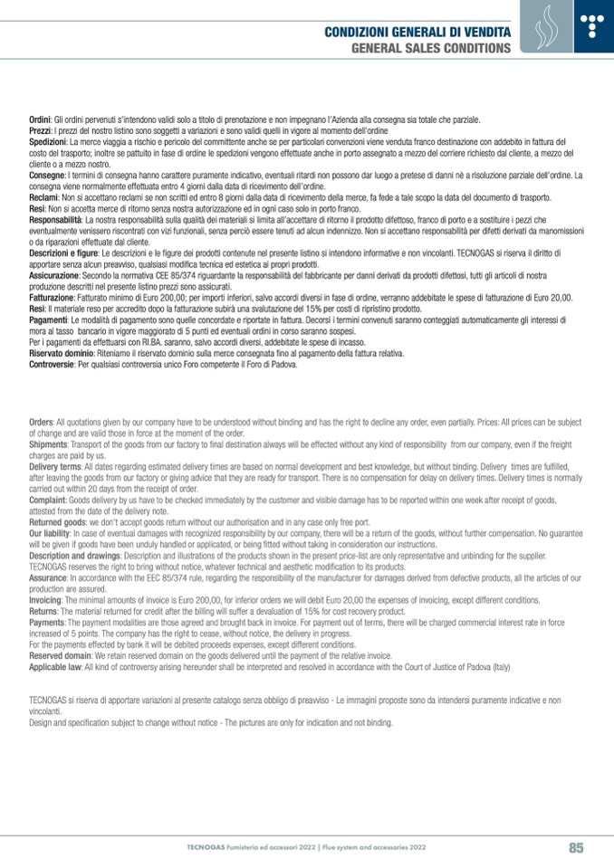 TECNOGAS Fumisteria ed accessori 2022 | Flue system and accessories 2022