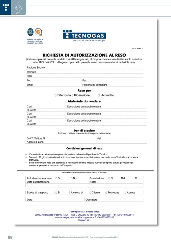 TECNOGAS Fumisteria ed accessori 2022 | Flue system and accessories 2022