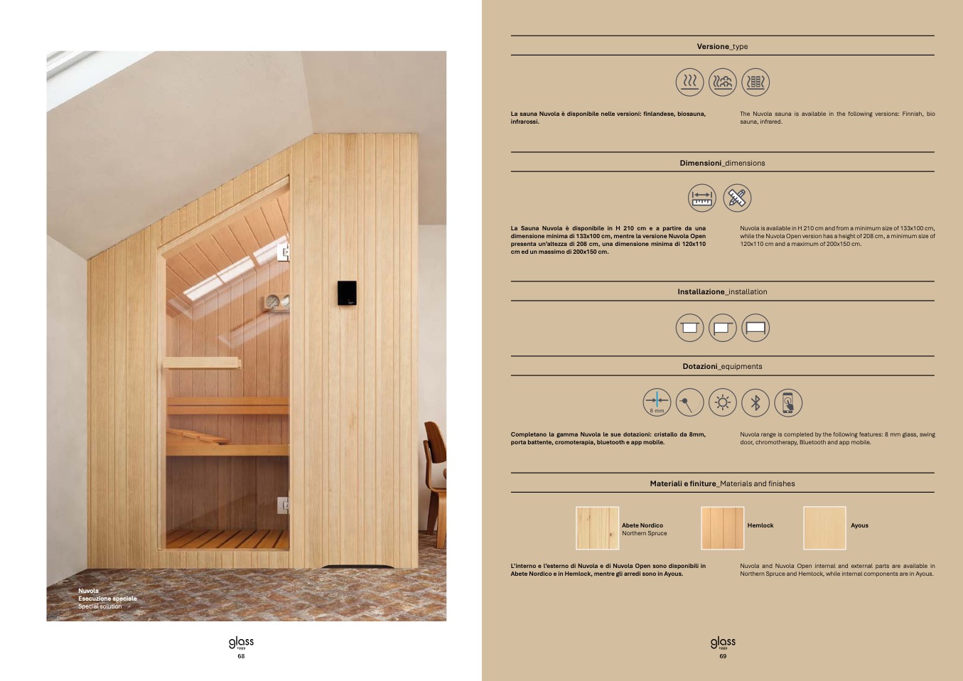 The Nuvola sauna is available in the following versions: Finnish, bi