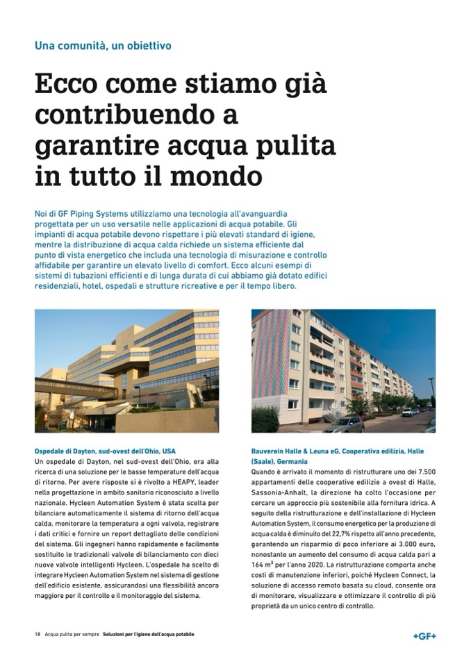 18 Acqua pulita per sempre Soluzioni per l'igiene dell'acqua potabile