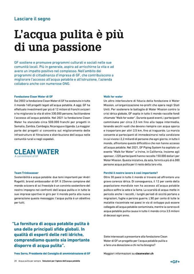 Dal 2002 la fondazione Clean Water di GF ha sostenuto in tutto