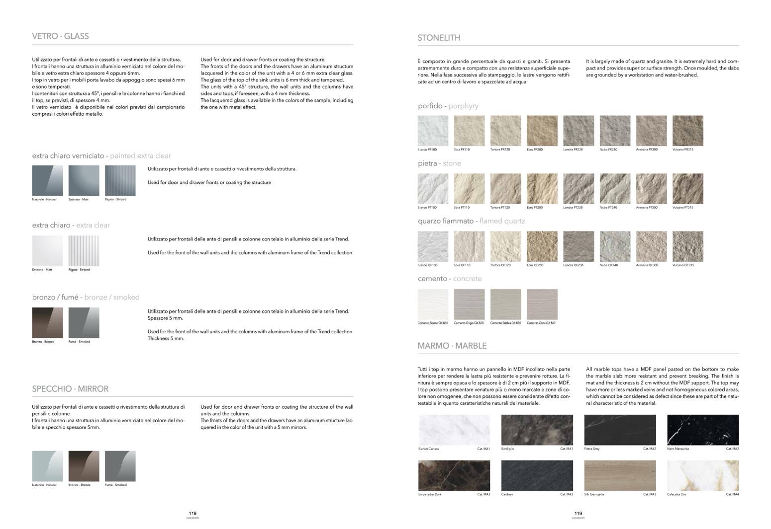 Used for the front of the wall units and the columns with aluminum frame of the Trend collection.
