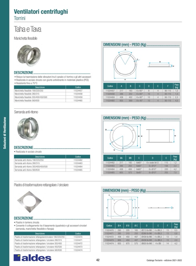 • Realizzata in acciaio zincato con giunto antivibrante in materiale plastico (PES)