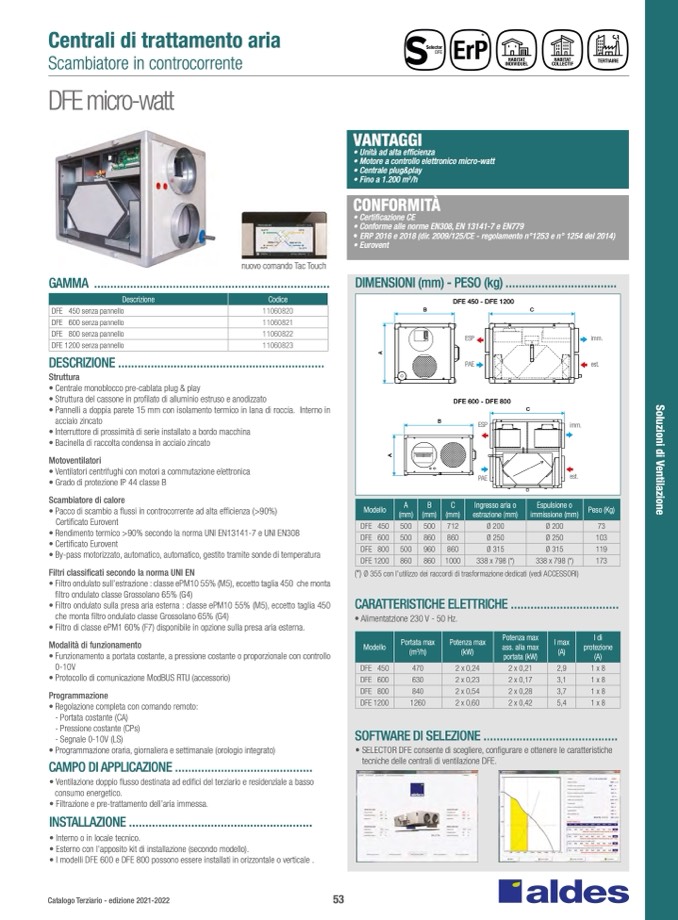 • I modelli DFE 600 e DFE 800 possono essere installati in orizzontale o verticale .