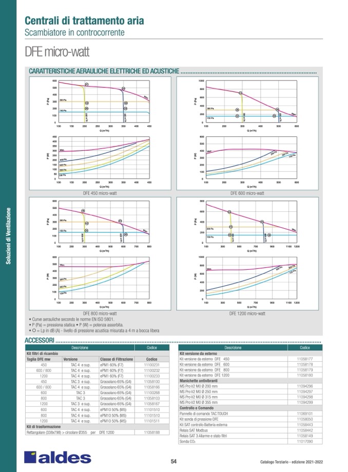 • Curve aerauliche secondo le norme EN ISO 5801.