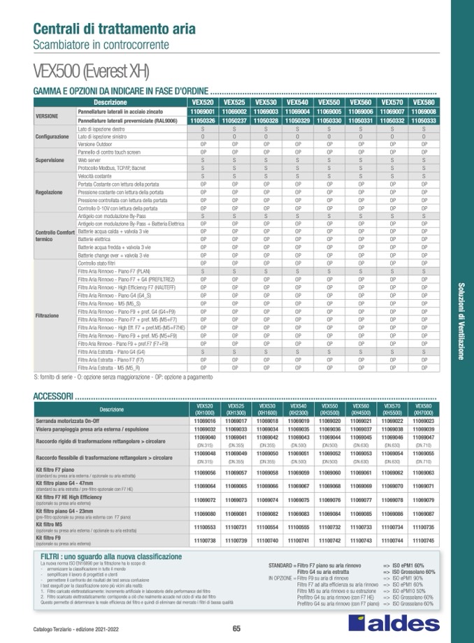 (standard su aria estratta / pre-filtro opzionale con F7 HE)