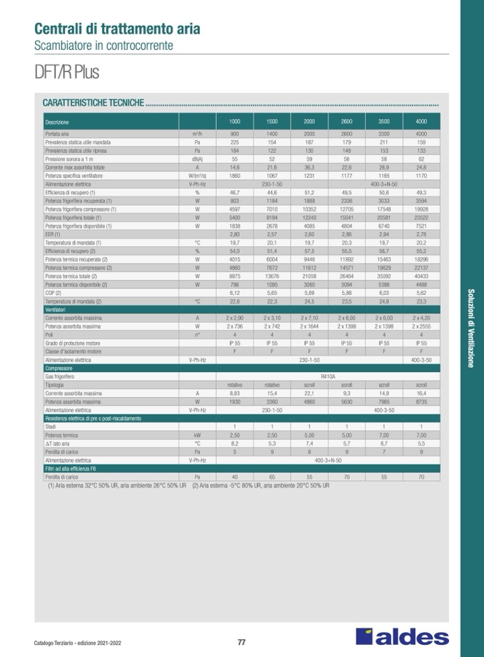 (1) Aria esterna 32°C 50% UR, aria ambiente 26°C 50% UR
