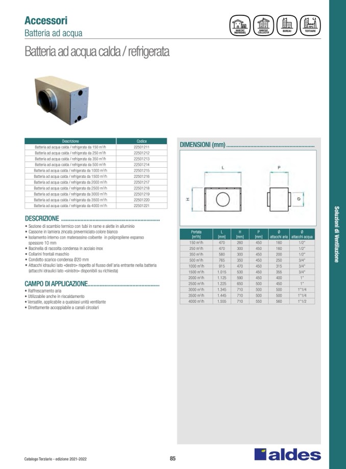 Batteria ad acqua calda / refrigerata da 2500 m