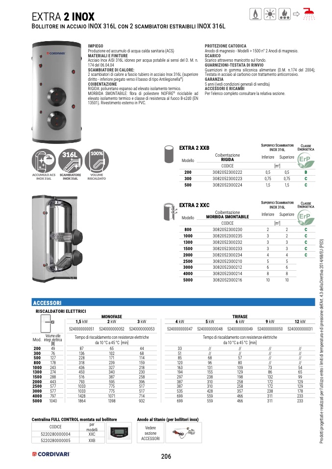 2 scambiatori di calore a fascio tubiero in acciaio Inox 316L (superiore