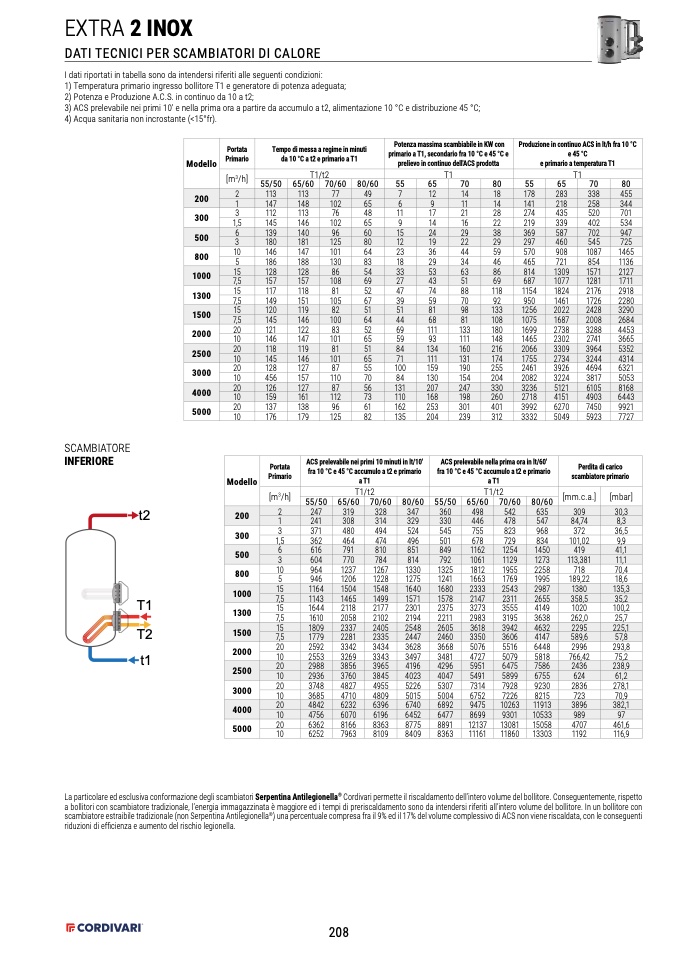 a bollitori con scambiatore tradizionale, l’energia immagazzinata è maggiore ed i tempi di preriscaldamento sono da intendersi riferiti all’intero volume del bollitore. In un bollitore con