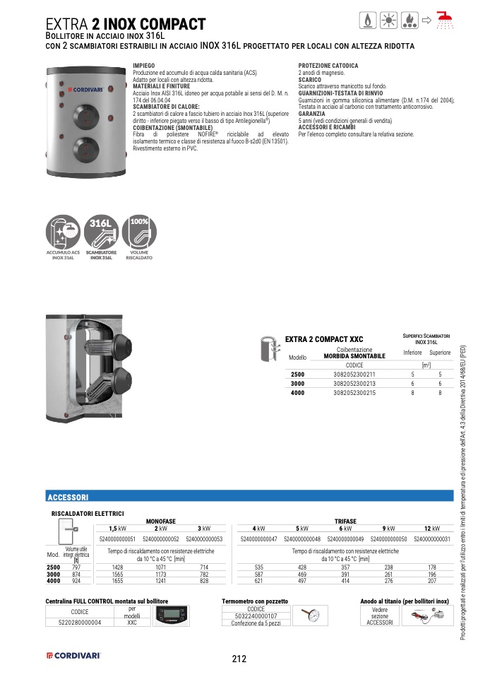 2 scambiatori di calore a fascio tubiero in acciaio Inox 316L (superiore
