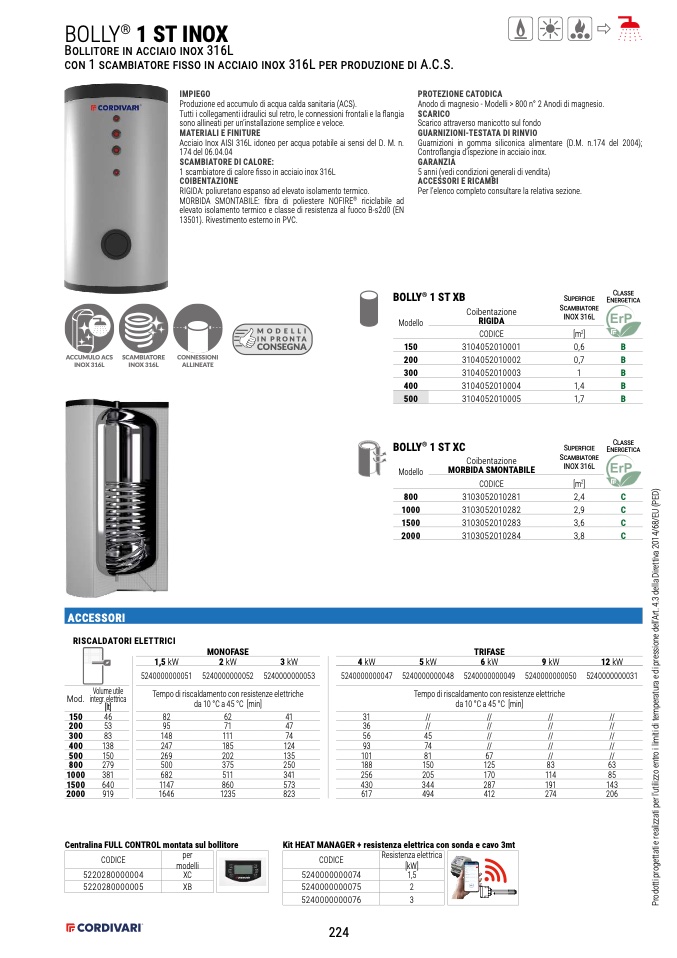 con 1 scambiatore fisso in acciaio inox 316L per produzione di A.C.S.
