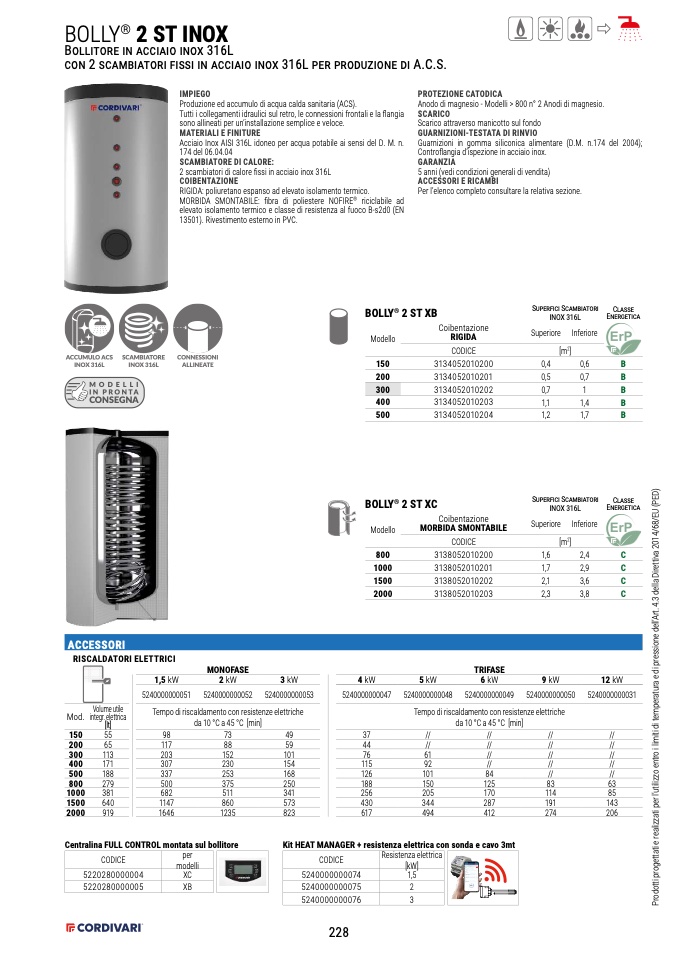 con 2 scambiatori fissi in acciaio inox 316L per produzione di A.C.S.