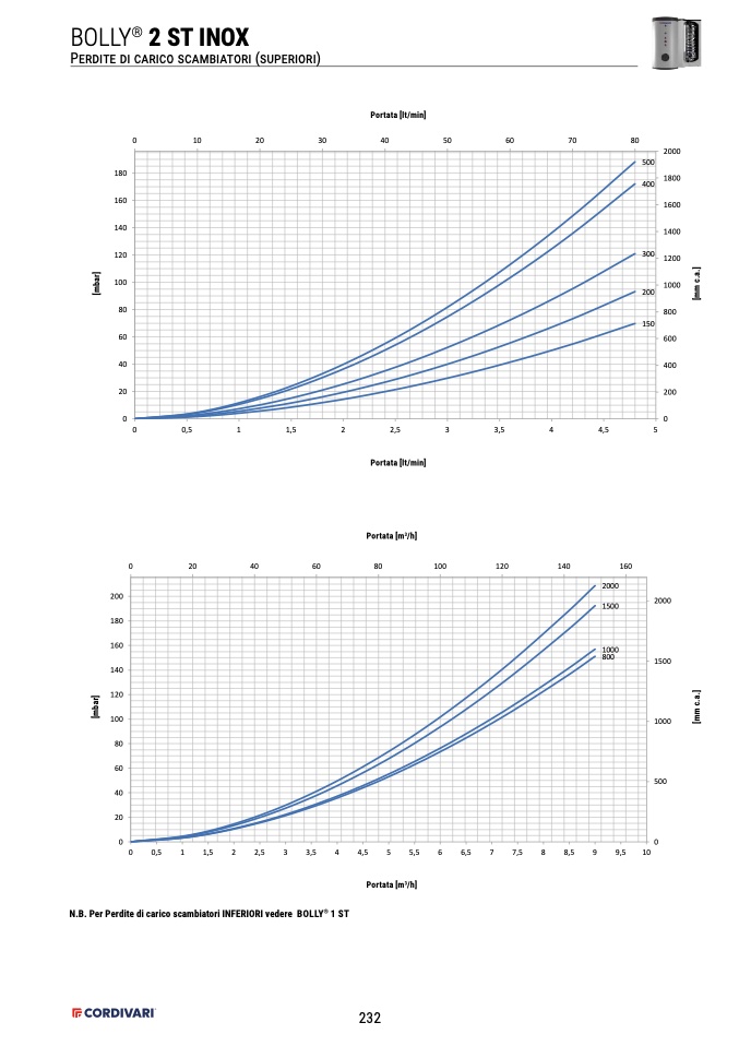 N.B. Per Perdite di carico scambiatori INFERIORI vedere BOLLY