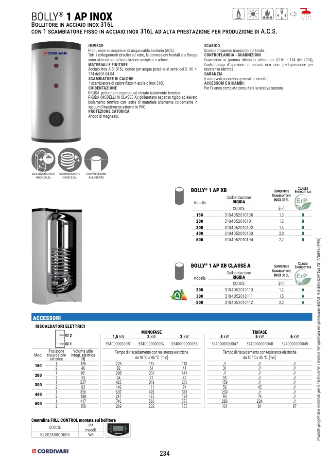 Produzione ed accumulo di acqua calda sanitaria (ACS).
