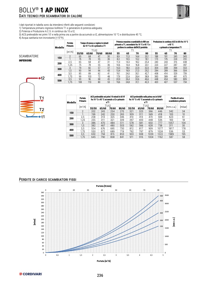 3) ACS prelevabile nei primi 10’ e nella prima ora a partire da accumulo a t2, alimentazione 10 °C e distribuzione 45 °C;