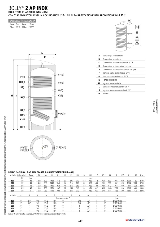 2 AP INOX - 2 AP INOX CLASSE A (COIBENTAZIONE RIGIDA -XB)