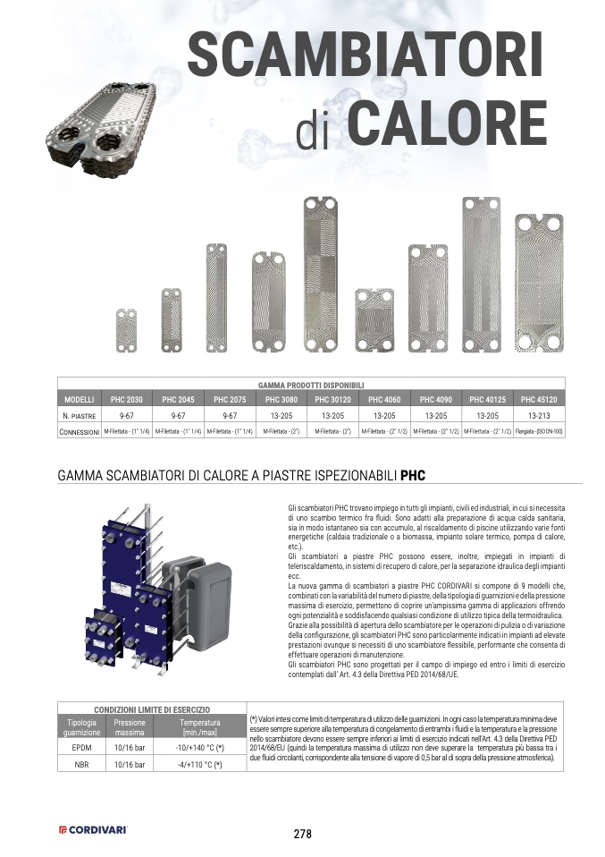 La nuova gamma di scambiatori a piastre PHC CORDIVARI si compone di 9 modelli che,