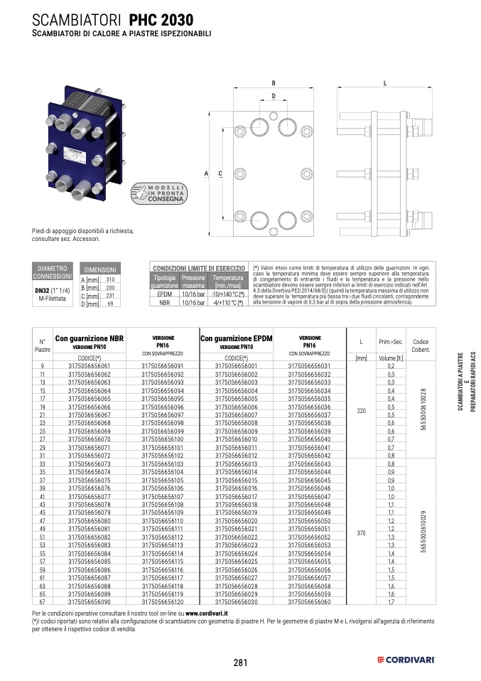 (*)I codici riportati sono relativi alla configurazione di scambiatore con geometria di piastre H. Per le geometrie di piastre M e L rivolgersi all’agenzia di riferimento