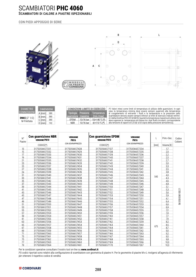 (*)I codici riportati sono relativi alla configurazione di scambiatore con geometria di piastre H. Per le geometrie di piastre M e L rivolgersi all’agenzia di riferimento