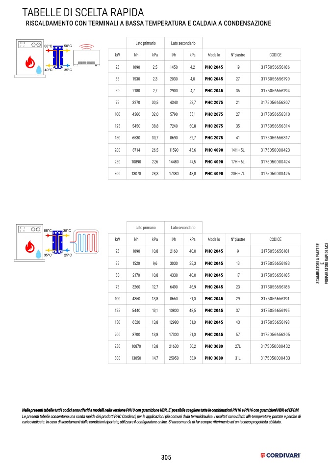 Le presenti tabelle consentono una scelta rapida dei prodotti PHC Cordivari, per le applicazioni più comuni della termoidraulica. I risultati sono riferiti alle temperature, portate e perdite di