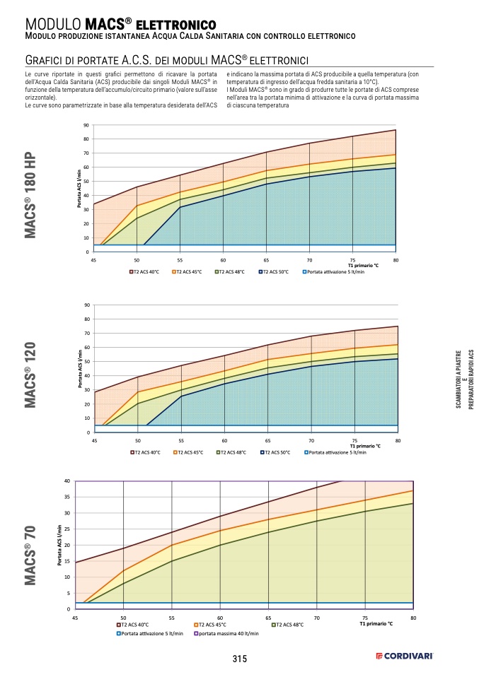 Le curve sono parametrizzate in base alla temperatura desiderata dell’ACS