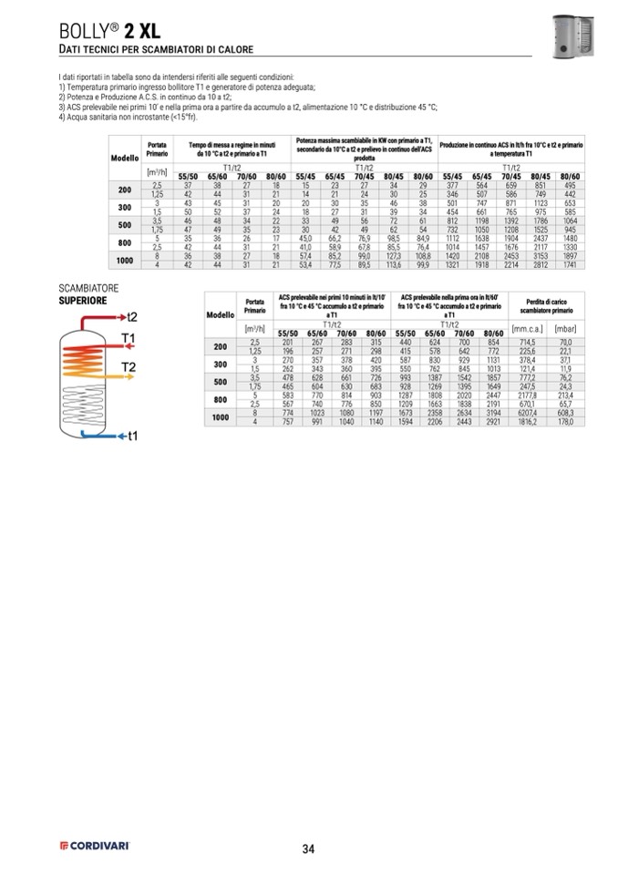 Produzione in continuo ACS in lt/h fra 10°C e t2 e primario