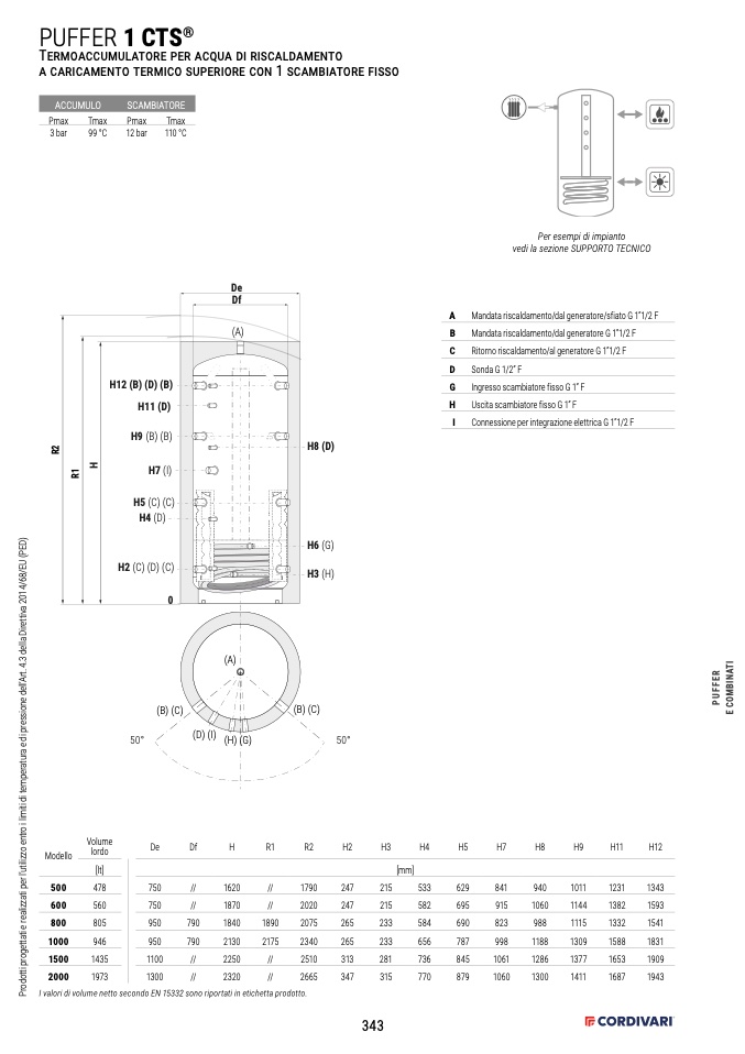 C Ritorno riscaldamento/al generatore G 1”1/2 F