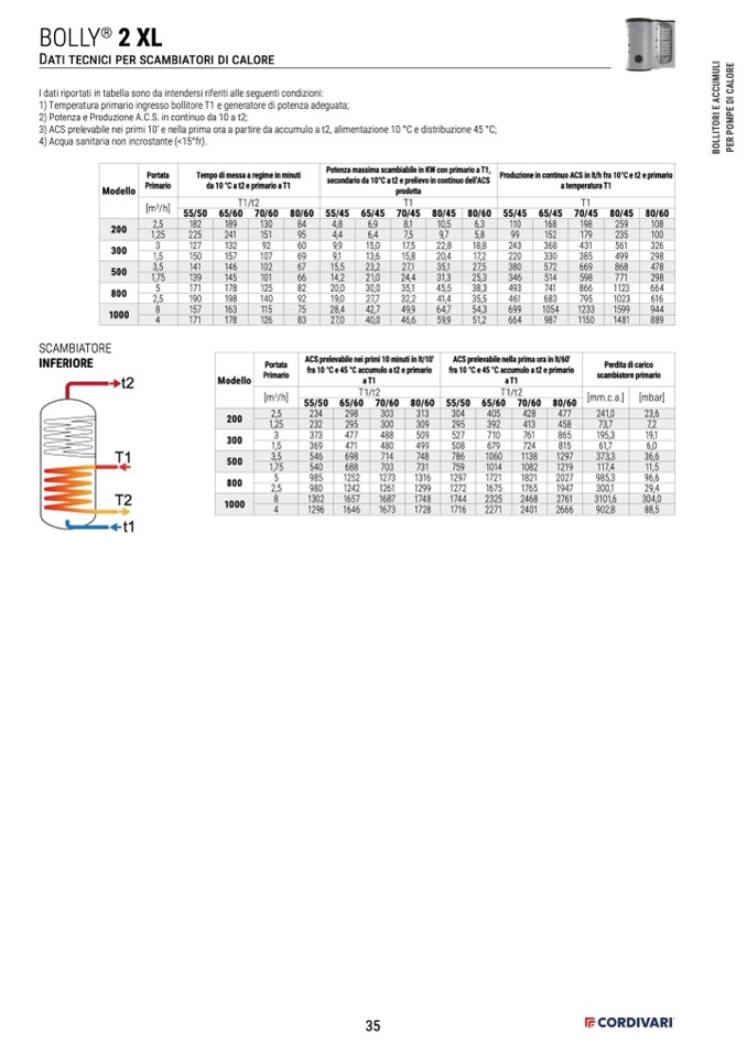 Produzione in continuo ACS in lt/h fra 10°C e t2 e primario