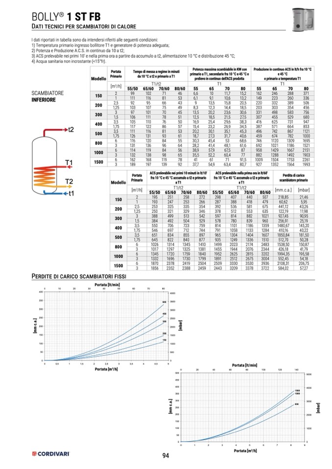 3) ACS prelevabile nei primi 10’ e nella prima ora a partire da accumulo a t2, alimentazione 10 °C e distribuzione 45 °C;