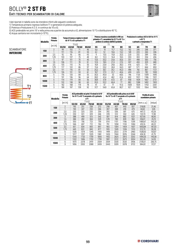 3) ACS prelevabile nei primi 10’ e nella prima ora a partire da accumulo a t2, alimentazione 10 °C e distribuzione 45 °C;