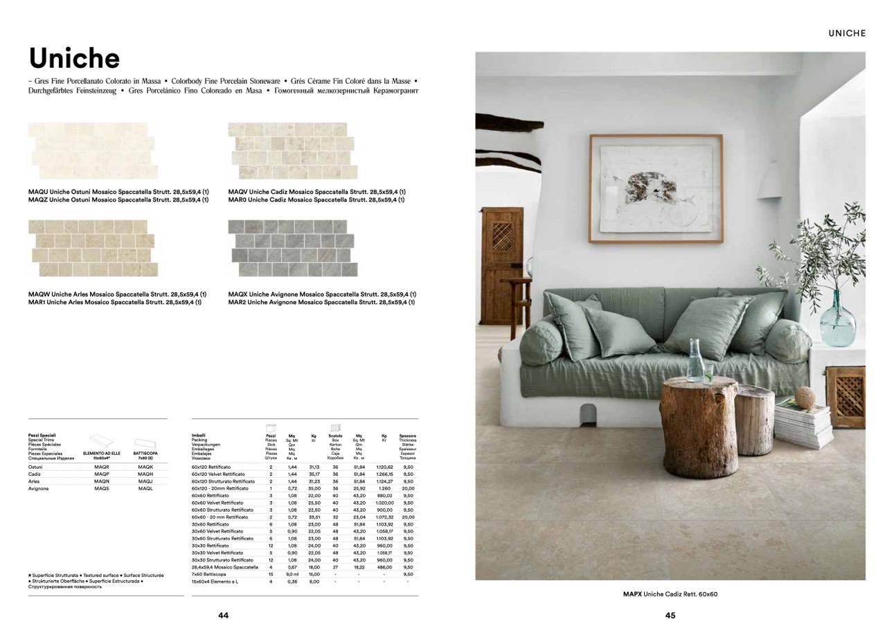 Durchgefärbtes Feinsteinzeug • Gres Porcelánico Fino Coloreado en Masa • Гомогенный мелкозернистый Керамогранит