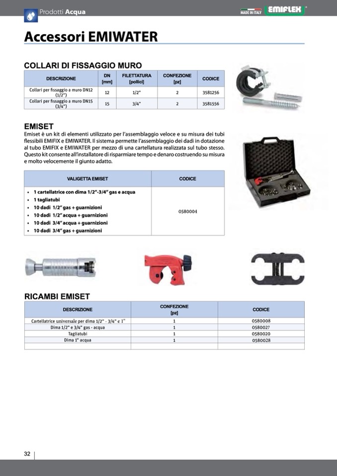 al tubo EMIFIX e EMIWATER per mezzo di una cartellatura realizzata sul tubo stesso.