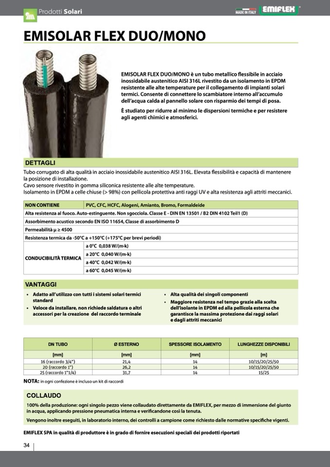 Isolamento in EpDM a celle chiuse (> 98%) con pellicola protettiva anti raggi UV e alta resistenza agli attriti meccanici.