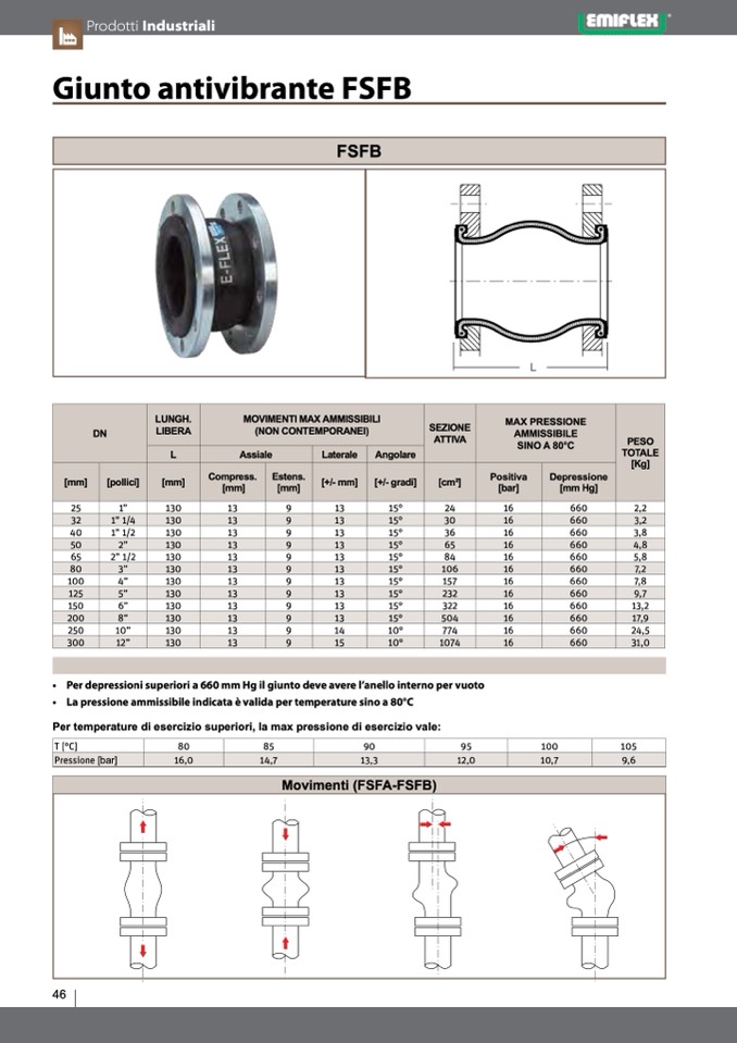 • La pressione ammissibile indicata è valida per temperature sino a 80°C