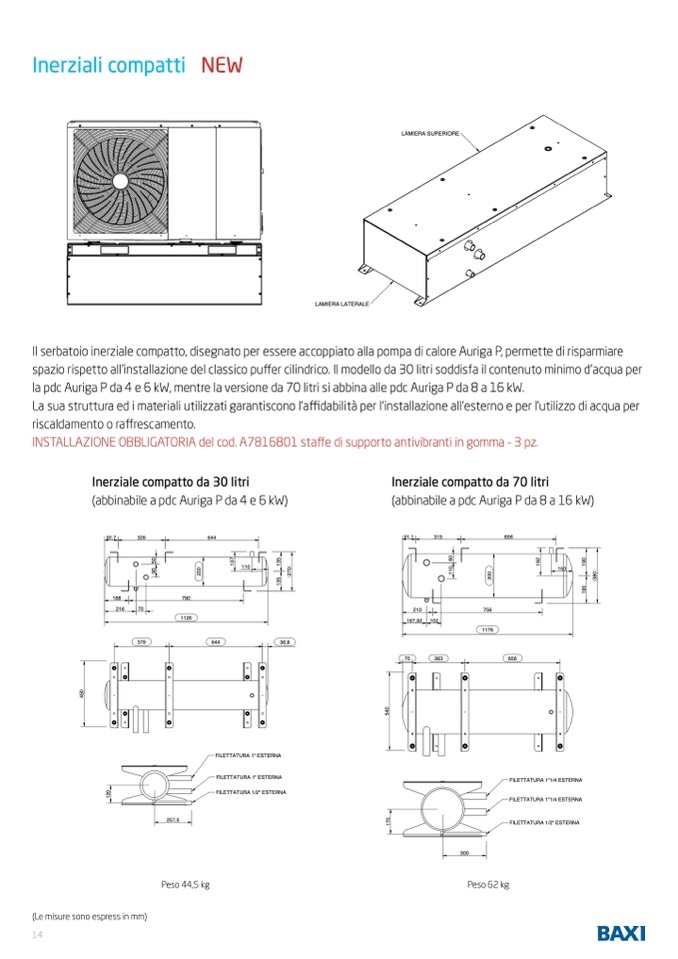 la pdc Auriga P da 4 e 6 kW, mentre la versione da 70 litri si abbina alle pdc Auriga P da 8 a 16 kW.