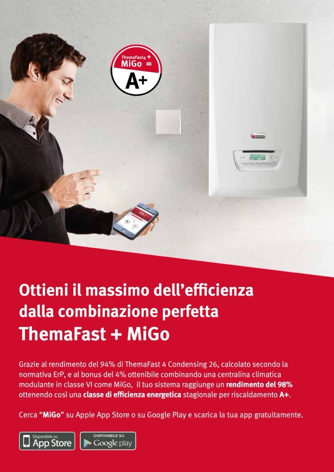 Grazie al rendimento del 94% di ThemaFast 4 Condensing 26, calcolato secondo la