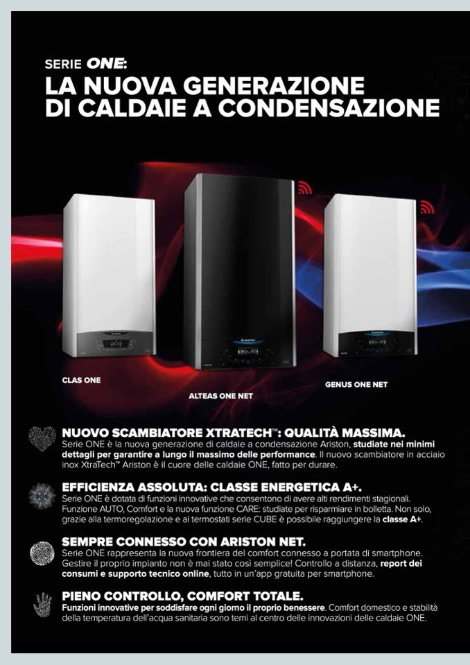 Serie ONE è la nuova generazione di caldaie a condensazione Ariston, studiate nei minimi