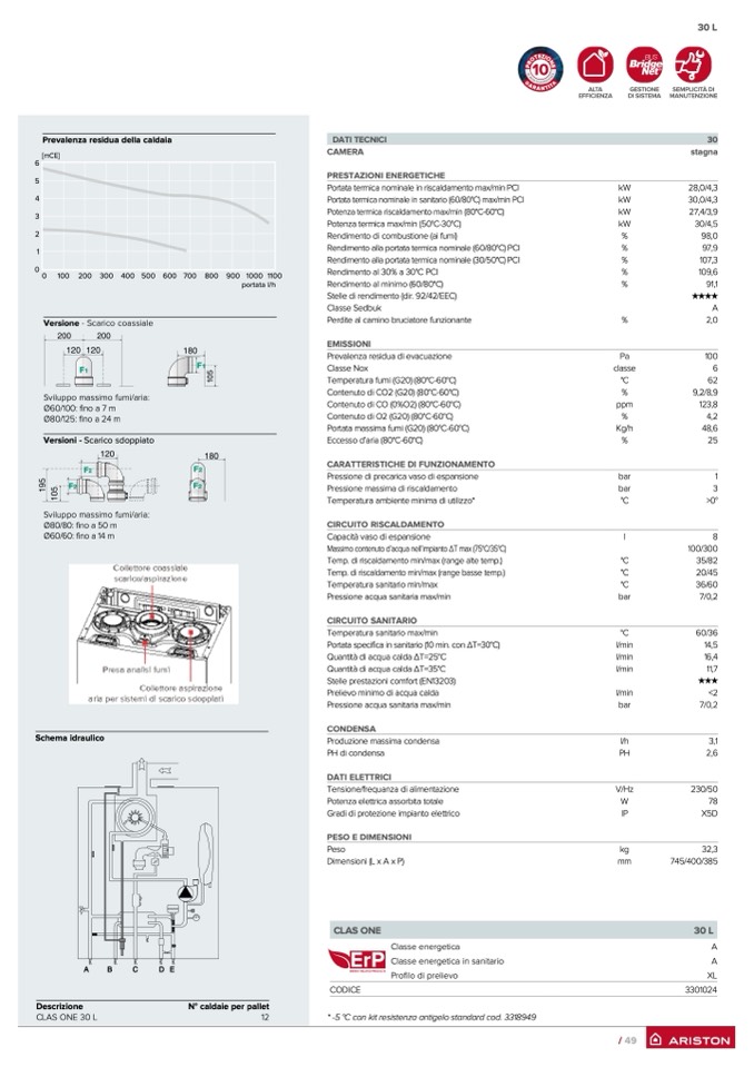 Portata specifica in sanitario (10 min. con ∆T=30°C)