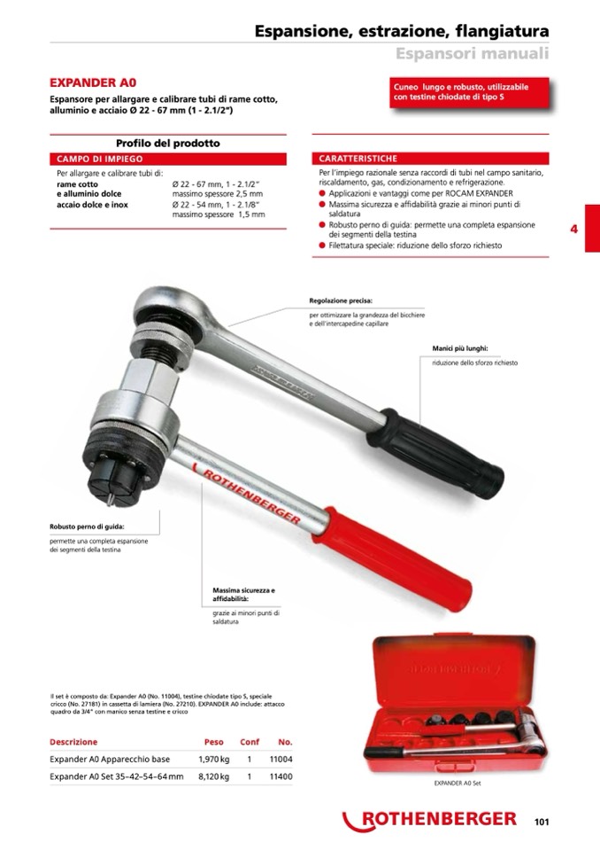 è composto da: Expander A0 (No. 11004), testine chiodate tipo S, speciale