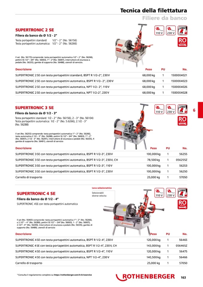 2.1/2”– 4” (No. 56294), interruttore di sicurezza a pedale (No. 56335), gambe di
