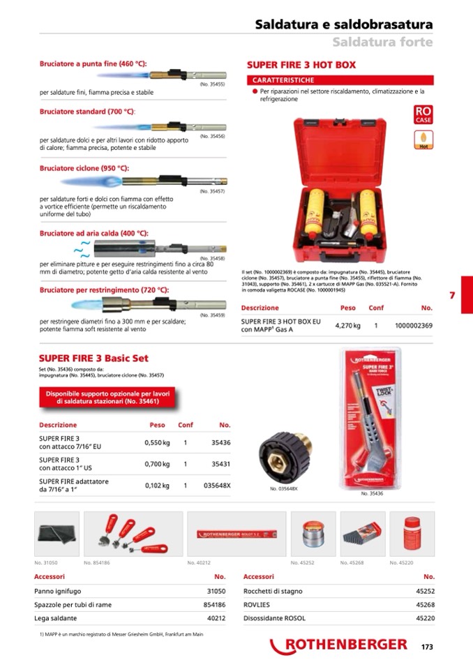31043), supporto (No. 35461), 2 x cartucce di MAPP Gas (No. 035521-A). Fornito