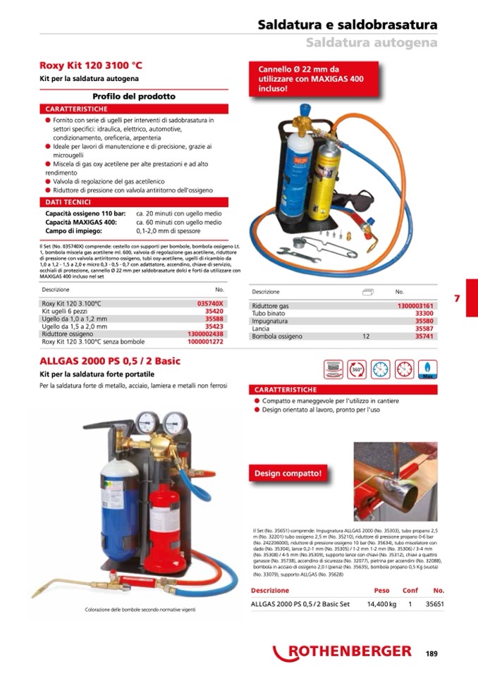 Il Set (No. 35651) comprende: Impugnatura ALLGAS 2000 (No. 35303), tubo propano 2,5