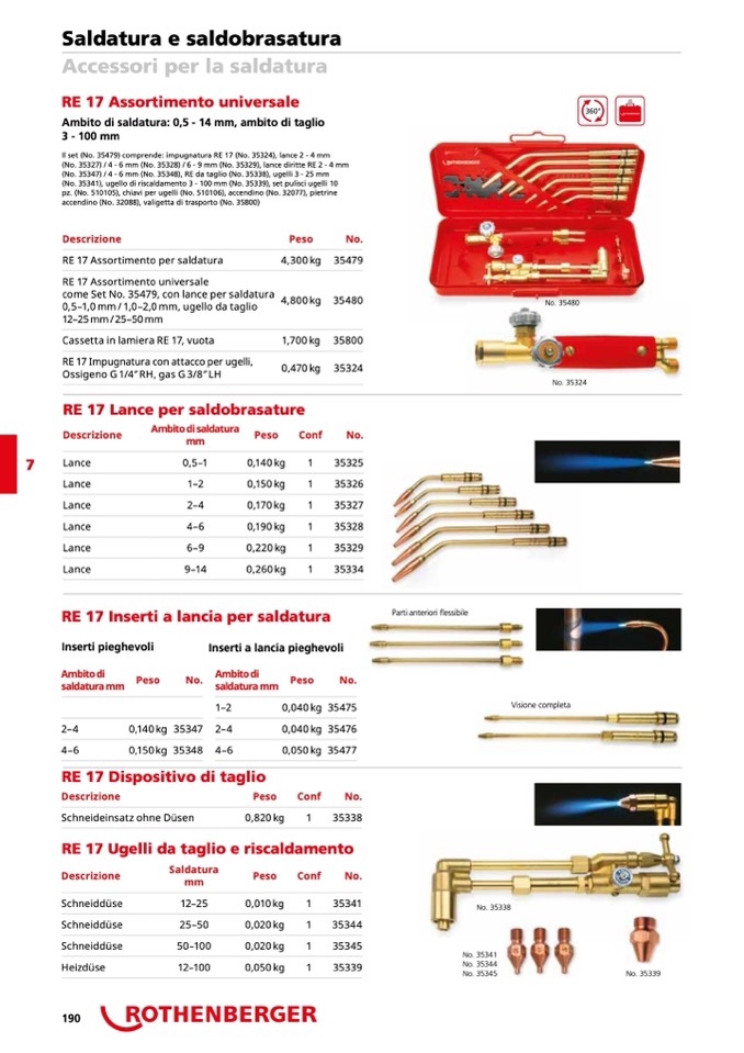 Il set (No. 35479) comprende: impugnatura RE 17 (No. 35324), lance 2 - 4 mm