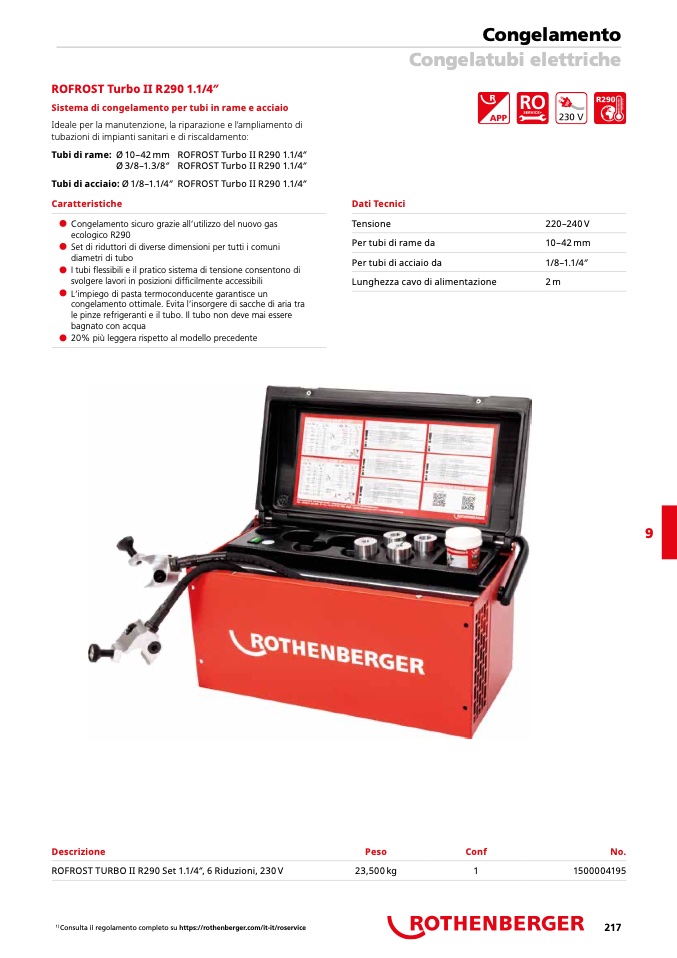 ROFROST TURBO II R290 Set 1.1/4′′, 6 Riduzioni, 230 V