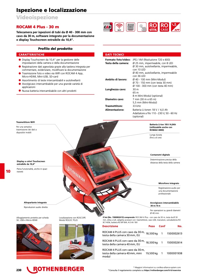 Il Set (No. 1500002613) comprende: ROCAM 4 Plus - con cavo da 30 m, testa da Ø 30