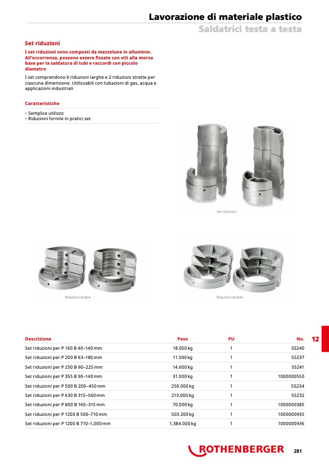 I set comprendono 6 riduzioni larghe e 2 riduzioni strette per