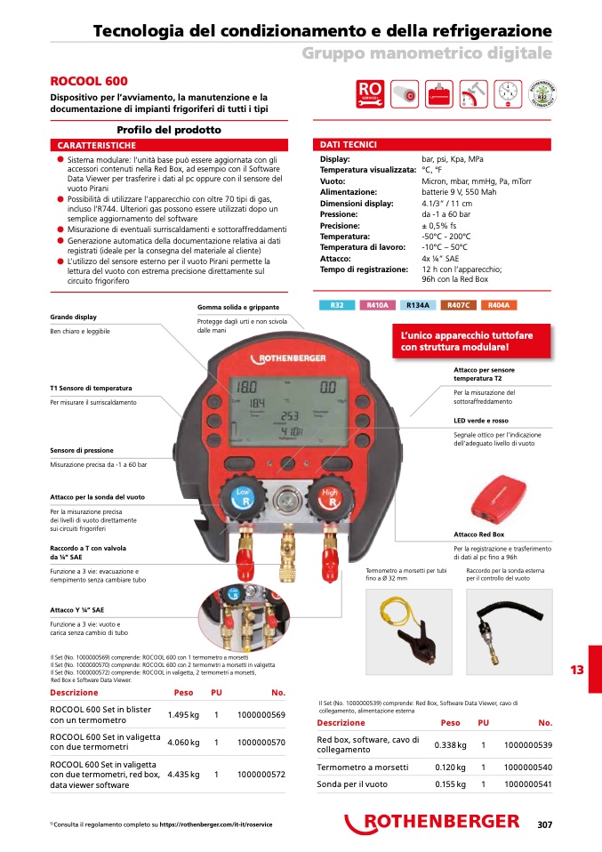 Il Set (No. 1000000569) comprende: ROCOOL 600 con 1 termometro a morsetti